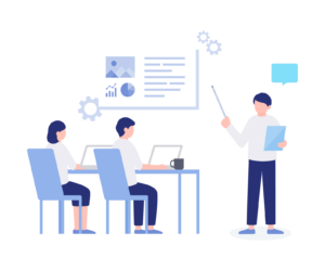 各チームや担当から前期の活動報告を行います。スライドを用意して、前期にどのような活動を行いどのような成果があったのか、来期の目標などを発表します。