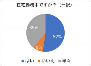 このご時世ということもあり、在宅、また半々(家と現場両方)なんて答えも多いですね!
